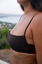 Tissu italien éco-responsable ultra-lisse et durable, fi nition mate, 78 % polyamide recyclé, 22 % élasthanne. Top brassière « sportif » : sobre, confortable, sans rembourrage, qui offre un soutien optimal grâce à ses baleines latérales et son effet légèrement galbant « push up », bretelles réglables. S'adapte à toutes les formes de poitrine. Modèle entièrement doublé, aucune transparence visible. Il a été imaginé et conçu pour se porter avec les bas DÉBORAH ou JULIETTA mais peut aussi se porter tous les autres bas de la collection.